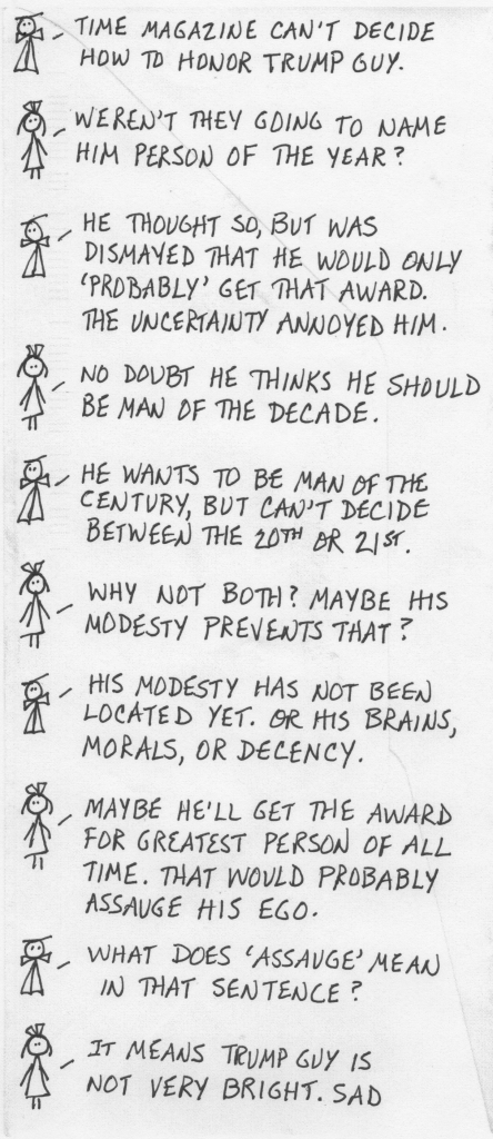 Politics, Trump Guy and President Whomever Stupid — Better than Nothing November 30, 2017 troy Leave a comment